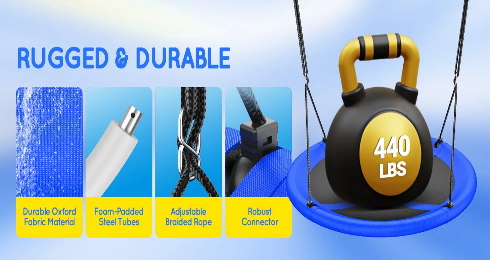 43" UFO Tree Swing for Kids & Adults - 700LB Capacity, Waterproof Hanging Saucer Seat with Adjustable Straps.