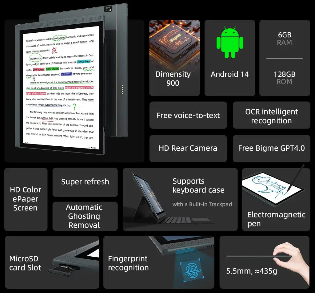Turn pages and take notes with stunning comfort on the Bigme B1051C color E-Ink reader powered by Android 14.