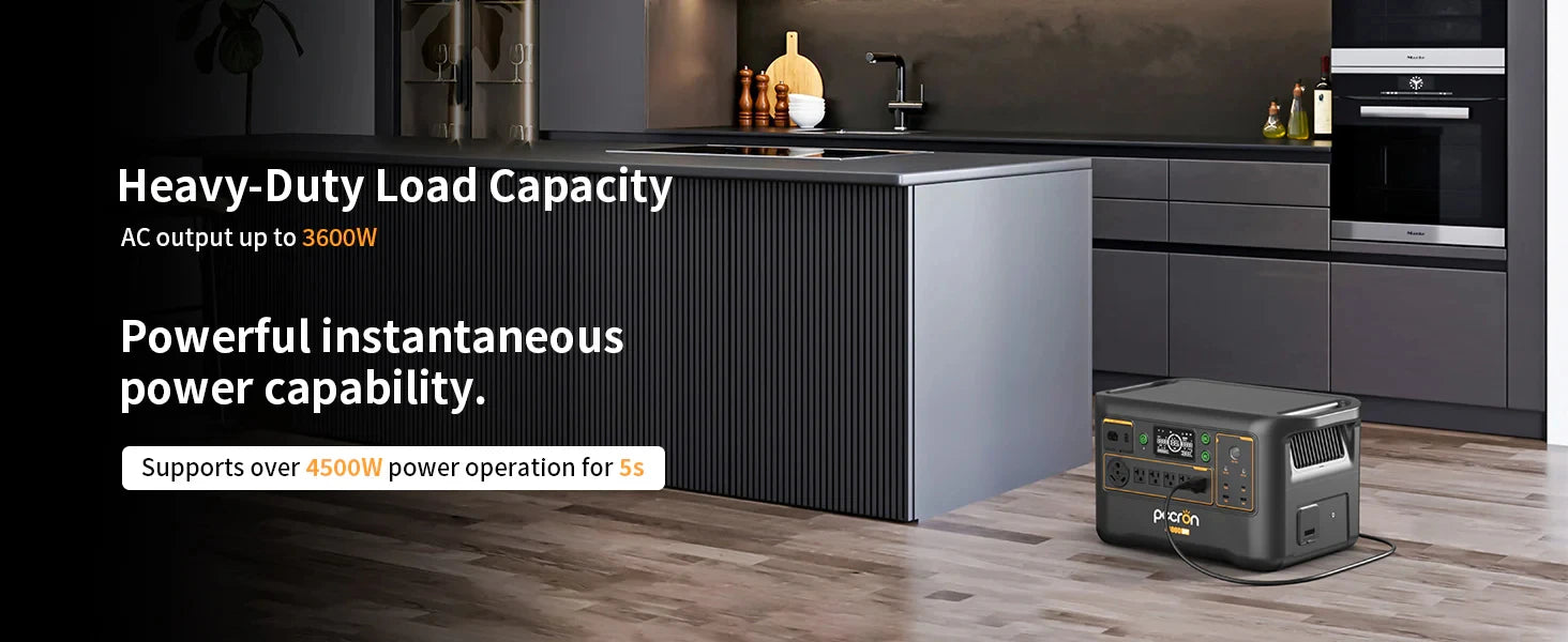 【3600W High Power & 3072Wh Massive Capacity】 Power 13 devices simultaneously with 3600W pure sine wave output, supporting heavy-duty appliances like refrigerators, air conditioners, and power tools. 3072Wh LiFePO4 battery provides emergency backup for 2-3 days of home essentials.