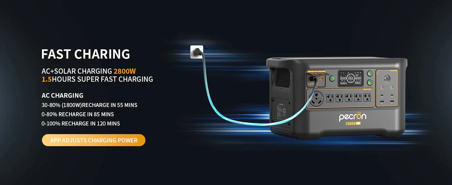 2800W Max AC+Solar Input in 1.5 Hours Super Fast Charging;